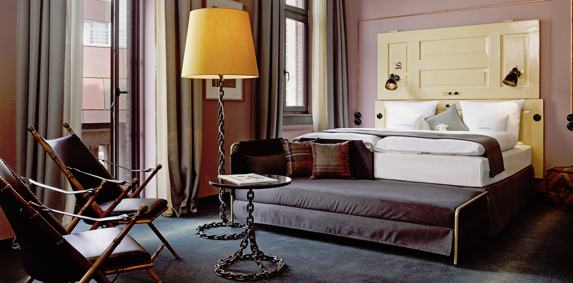 Vintage-Objekte treffen auf Flohmarkt-Fundstücke, Neues harmoniert mit Altem. Das lose Mobiliar variiert in jedem Zimmer und bereichert individuell die identische Grundeinrichtung (u.a. Kingsize-Betten, Flatscreen, Bluetooth-Boxen, WLAN) der 49 Quartiere.