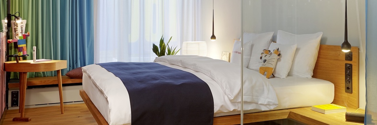 The second 25hours Hotel in Zurich is located directly at the track field of the central station and reflects the diversity of the area in its interior designed by Werner Aislinger. It shows references to great Swiss banks as well as the red-light district – and builds bridges to the city’s affinity for art as well as its commercial sense.The topics are played differently in the 170 rooms and public space – sometimes with foto wallpapers with visuals of Zurich’s photographer Nadja Stäubli, sometimes with Japanese erotic impressions by artist Tobias Rehberger.