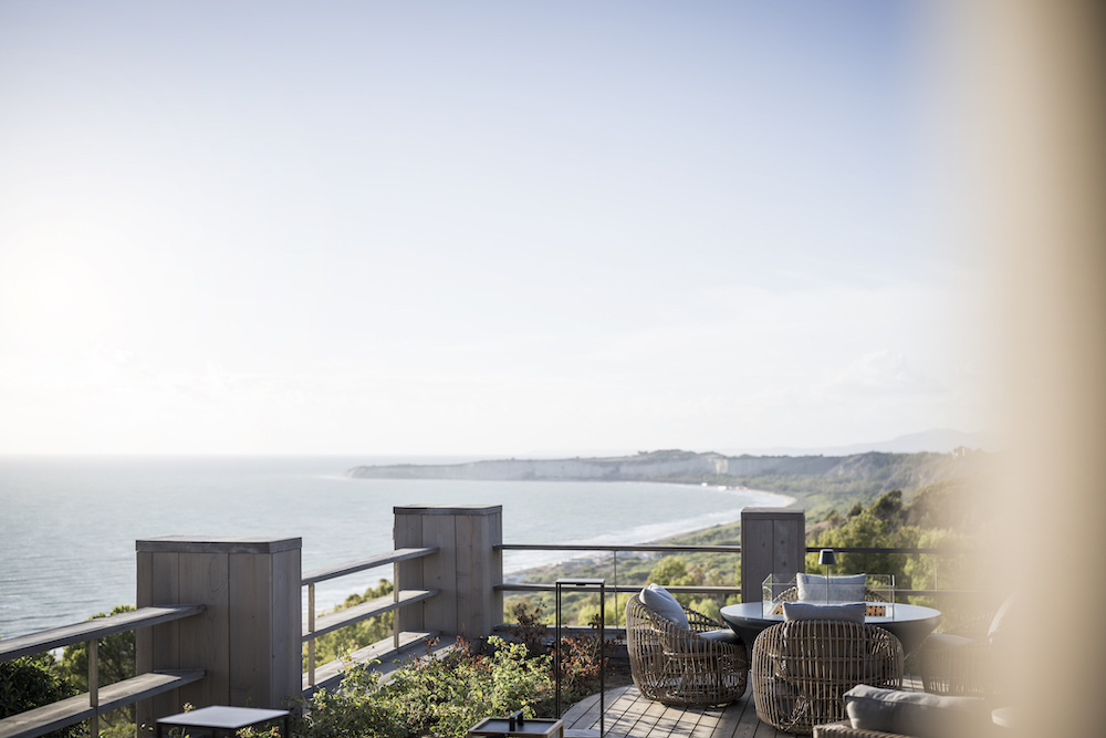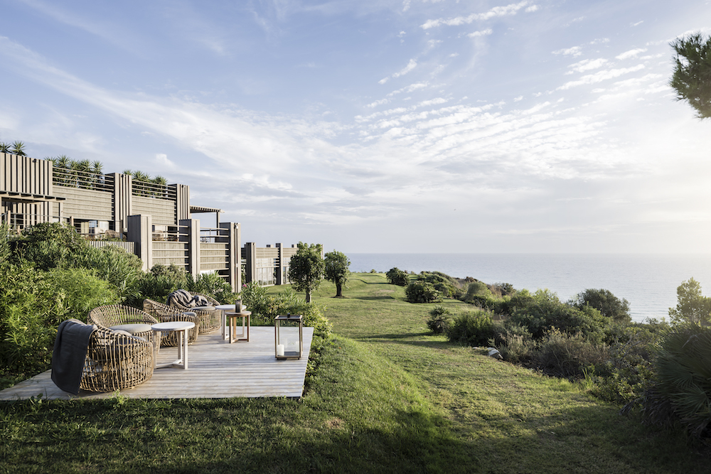 The beautiful landscape can be enjoyed especially in the generous outdoor areas of the resort. Furniture that is as comfortable as stylish by Danish outdoor specialist Cane-line assure comfort and aesthetics here.