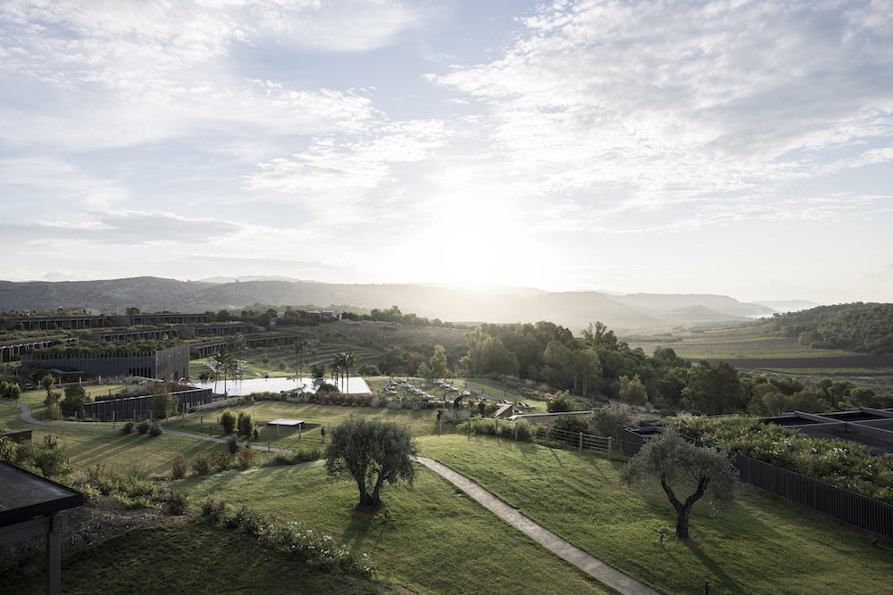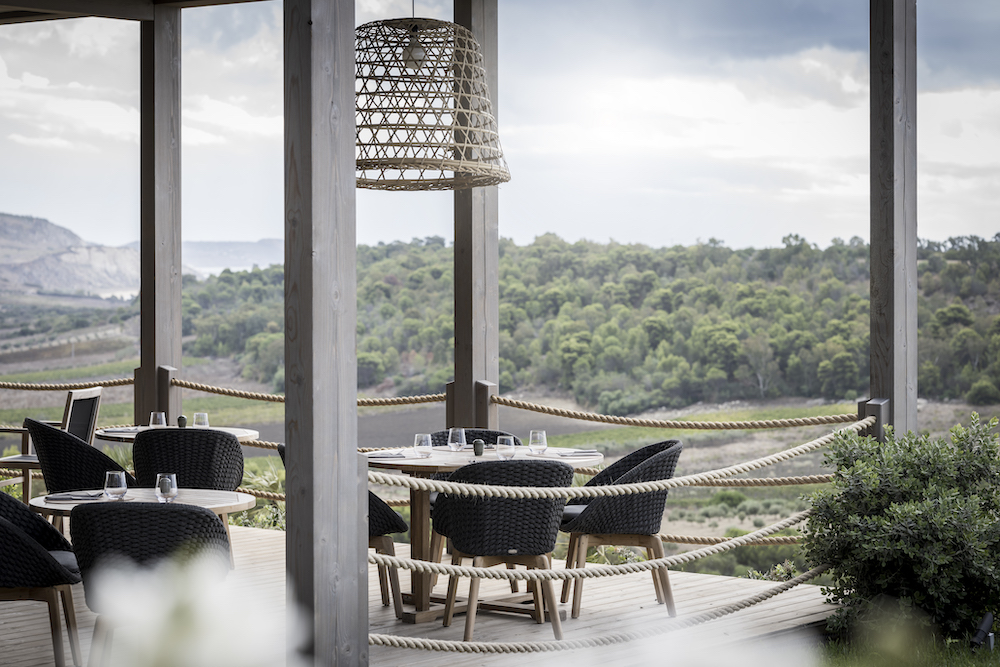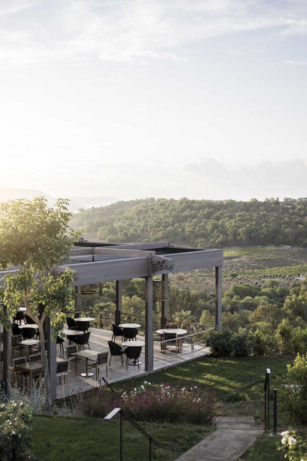 The architecture is consciously subtle. One to two story buildings are placed terrace-like on the slope and, surrounded by a Mediterranean plant world, open the view onto the sea. The inside and outside of the wellness notel is marked by a clear shape language and simple design in combination with natural and mainly regional building materials such as terra crude and tuff.