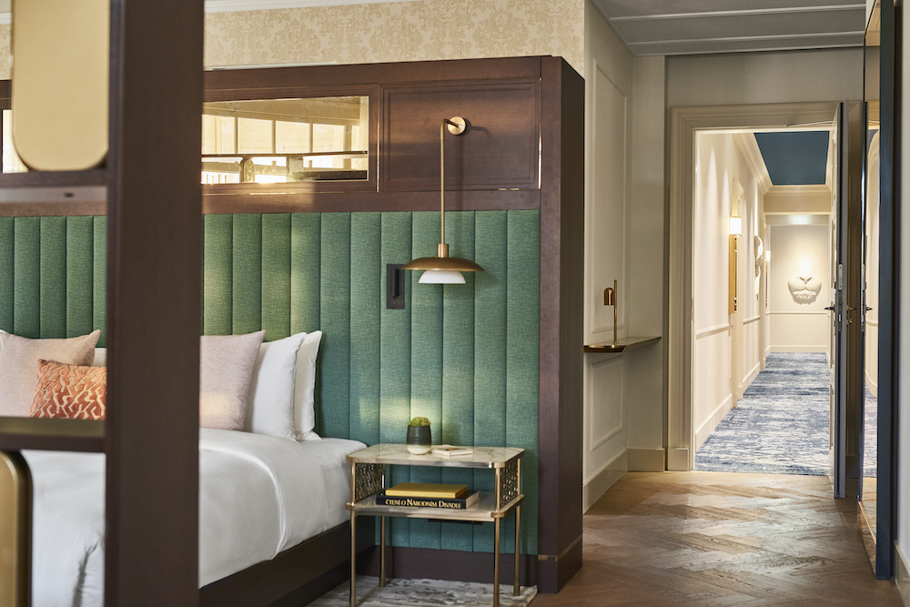 Design studio Brime Robbins did not merely want to preserve the building’s historical features, but rather to emphasize them, bringing into focus elements essential to Prague’s identity – such as local legends and myths, which now animate the hotel’s walls in the form of mythological figures.