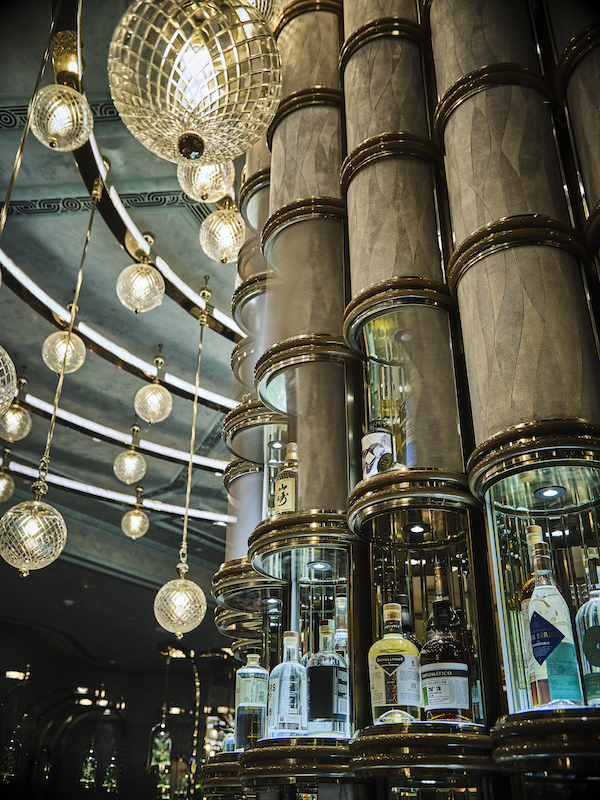 The bar tower features 58 individual rotating chambers that house the collection of innovative spirits