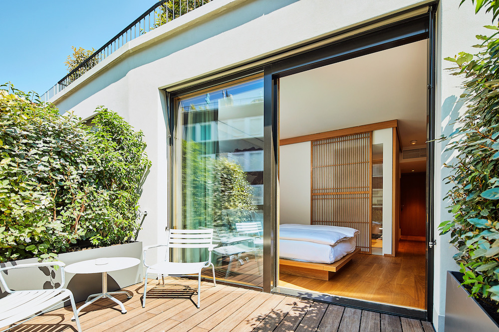 The interior is dominated by natural wood, stone and marble as well as elegant furniture by contemporary design brands. All over the house, one can admire street art from young artists. The Japanese touch is also special. It shapes the atmosphere of the rooms in the shape of Washi, the traditional Japanese paper.