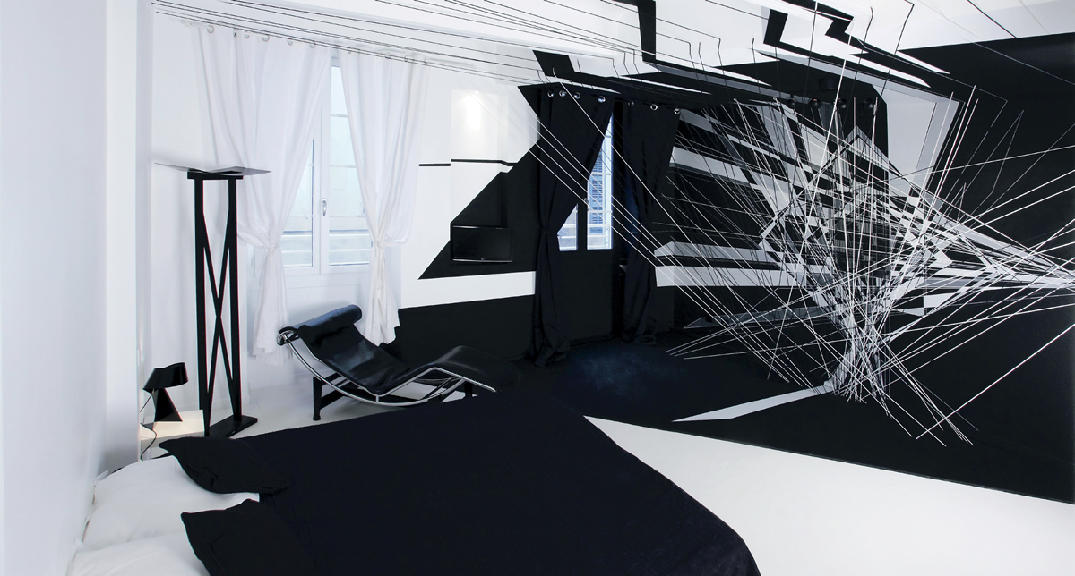 The five rooms designed by different artists are completely remodeled every year. Among others, Lyon’s Thomas Canto has gone creatively crazy in this three-story hotel (see photo).