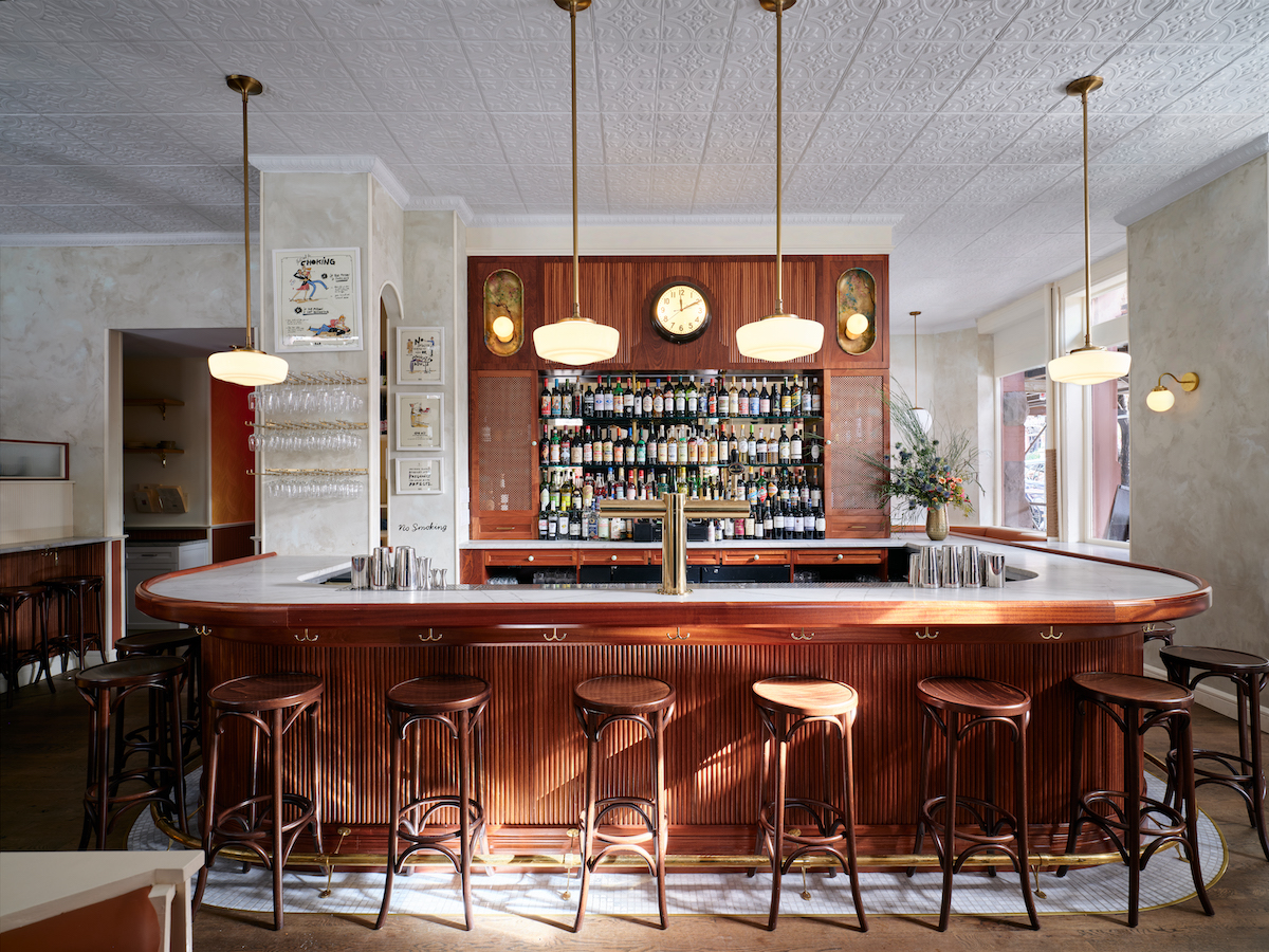 The briefing for the design of this neighborhood bar was: Bar Americano should look like a bar that has always welcomed guests here. This was implemented perfectly, and Franklin Street in Greenpoint, which is quite sleepy by New York standards, is not a bad place for such an experiment.