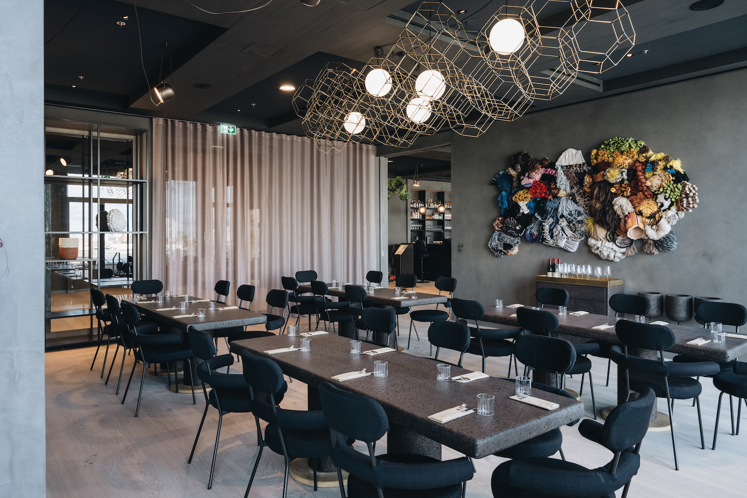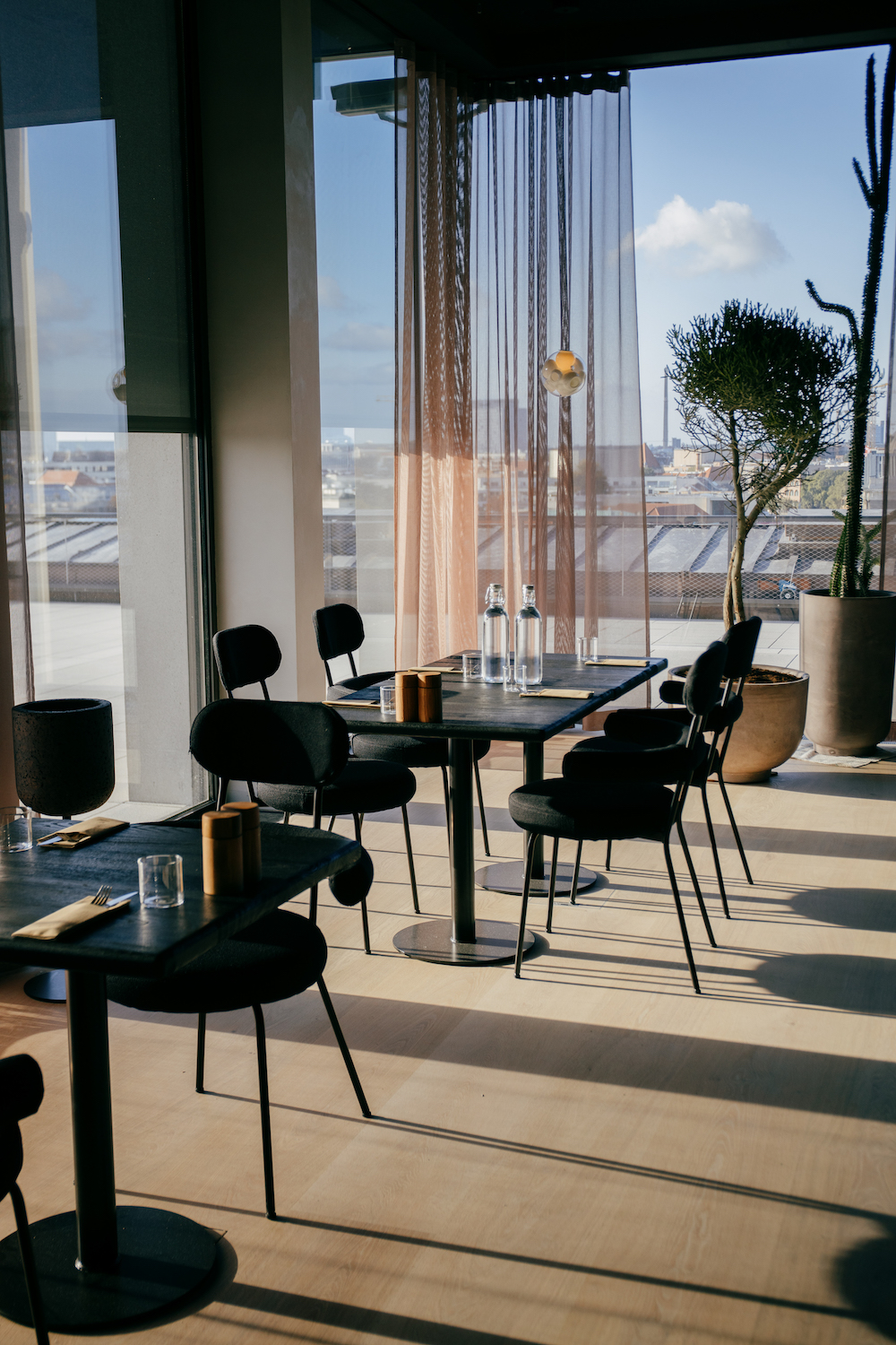The interior also presents itself unexcitedly zeitgeist-like and creates a casual frame for a relaxed evening. Strong light and dark contrasts and premium materials such as vulcanic natural stone, fine mineral plastery as well as glass, cork and wood are an expression of a puristic, clear design that, combined with the open floor plan and the wide view over the city, ensures a pleasant urban atmosphere.
