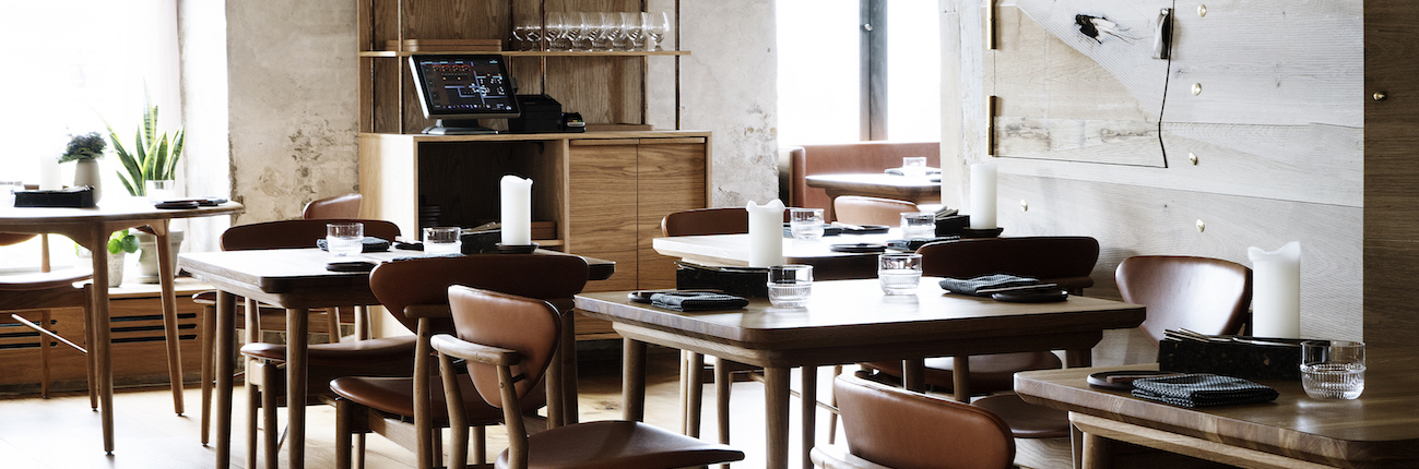 The color and material palette of the interior are also inspired by the Nordic spirit: broad oak floorboards, roughly scoffed white brick walls and the wooden beams create a warm and cozy atmosphere. The oak wood of the furniture stems from the area around Copenhagen.