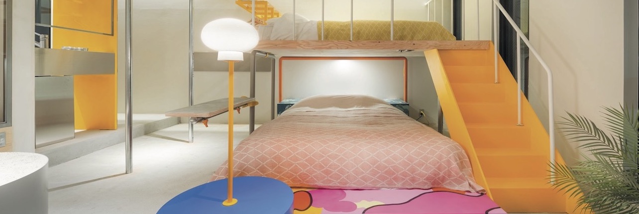 It plays with profound terms that connect the room with Japanese culture.The Athletic Park created by Studio BOWL refers to high school memories and includes graffiti of playgrounds and parts that the artists fathomed in the area between industrial design and pop art.