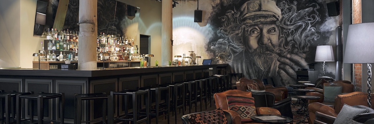 In the former map room, which used to store sea maps and plans for Hamburg’s harbor, hotel guests and other bar bar visitors can now enjoy highballs. The Dreimeta team combined original brick walls with modern panels, oak parquet, furniture custom made for the bar as well as flea market finds for the interior design of the Boilerman Bar.