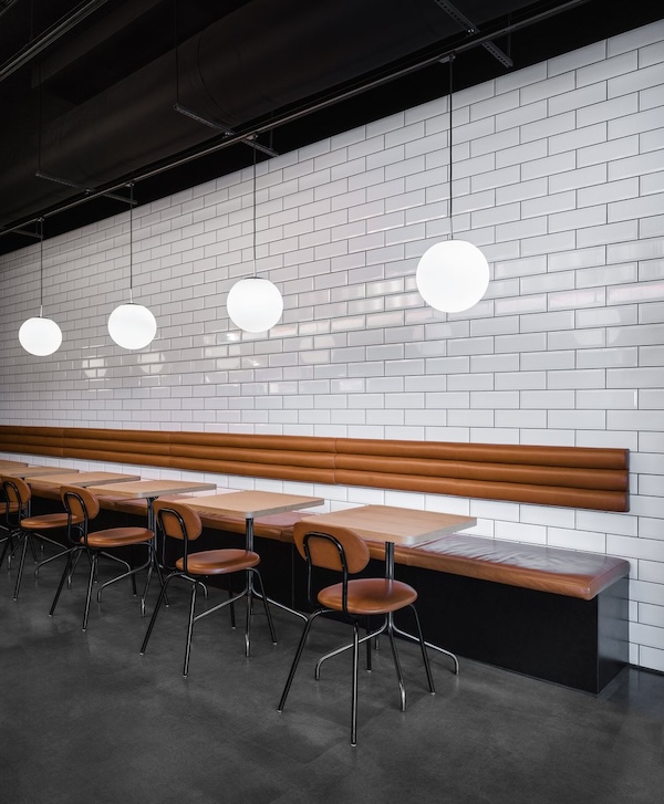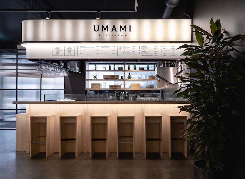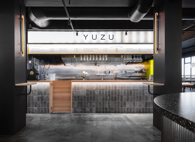 The interior was designed by HAF Studio, which uses black wall paint to create a latently intimate atmosphere. The individual restaurants, meanwhile, each have their own individual design and yet manage the feat of aesthetic coexistence with a harmonious end result.