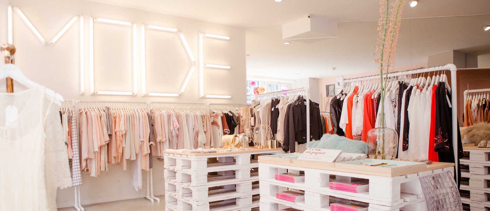 It’s not difficult to find out what the Boutique Belgique is all about. Bright neon letters on the wall say it all: FASHION.