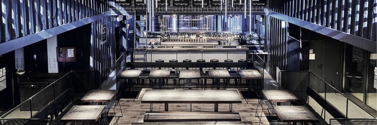 Stacked overseas containers are the home of Berlin’s craft beer brewery BRLO designed by GRAFT architects and located on the fringes of the park at the Gleisdreieck. Bar, restaurant, event rooms, offices and the brewery are spread across 600 square meters.
