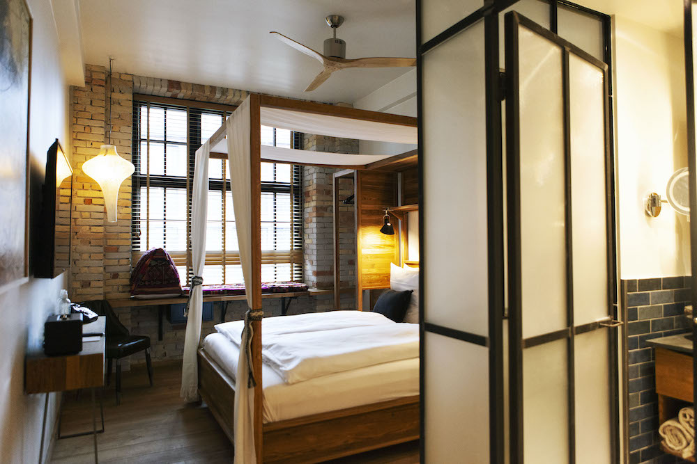 The hotel values sustainability: the mattresses, the bedding and pillows are filled with the wool of “happy, lovingly combed” animals, the textiles in the baths are made of ecological and recycling fabrics and the restaurant Sole Factory only serves organic ingredients.