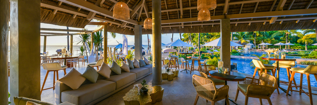 The colorful design using natural elements such as wood and stone creates the relaxed atmosphere of the beach bar that connects bar, restaurant and lounge. With cool house beats in the ears, the grand nature backdrop and exotic cocktails as well as Mauritian specialties, ultimate relaxation is not far.