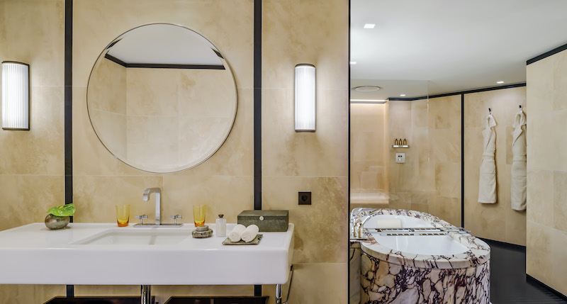 Their principle for hotel openings: “We treat each one like the launch of a new collection of jewels.” It shows. Marble, tapestries and lacquered eucalyptus wood, lots of art, a spa reminiscent of Roman baths.