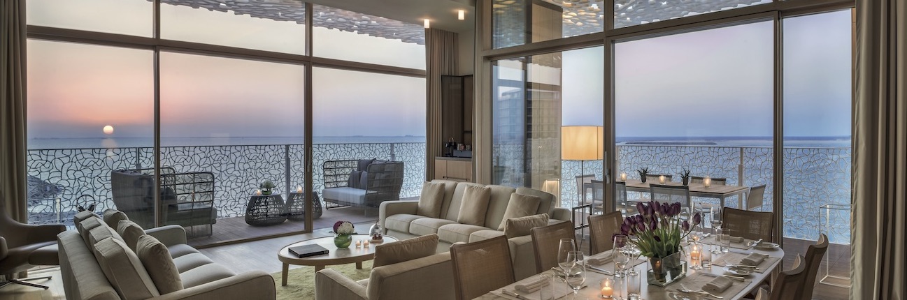 Seltene Materialien, die hinsichtlich Farbe, Textur oder Haptik exklusiv glänzen und schimmern, stehen so auch in derTradition arabischer Gastfreundschaft. Das Hotel ist mit beleuchteten Gärten und Pools ausgestattet und schafft eine mediterrane Oase inmitten der natürlichen Umgebung des Arabischen Golfs.