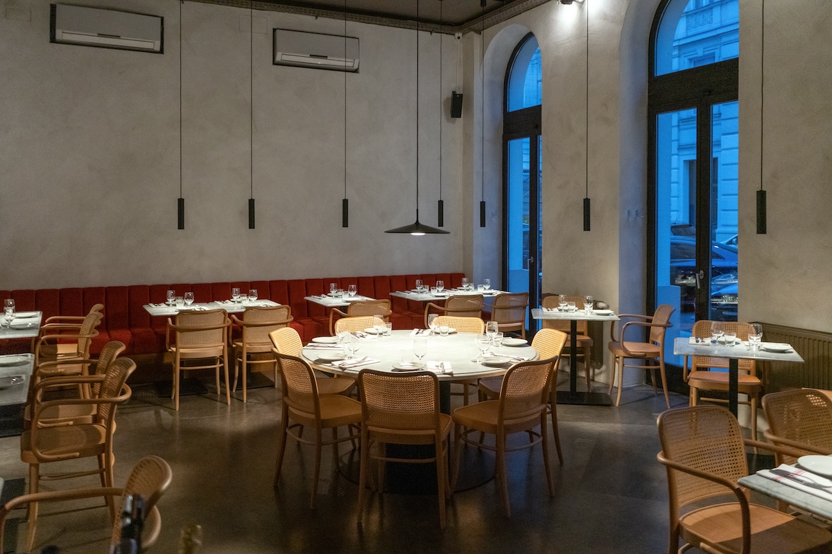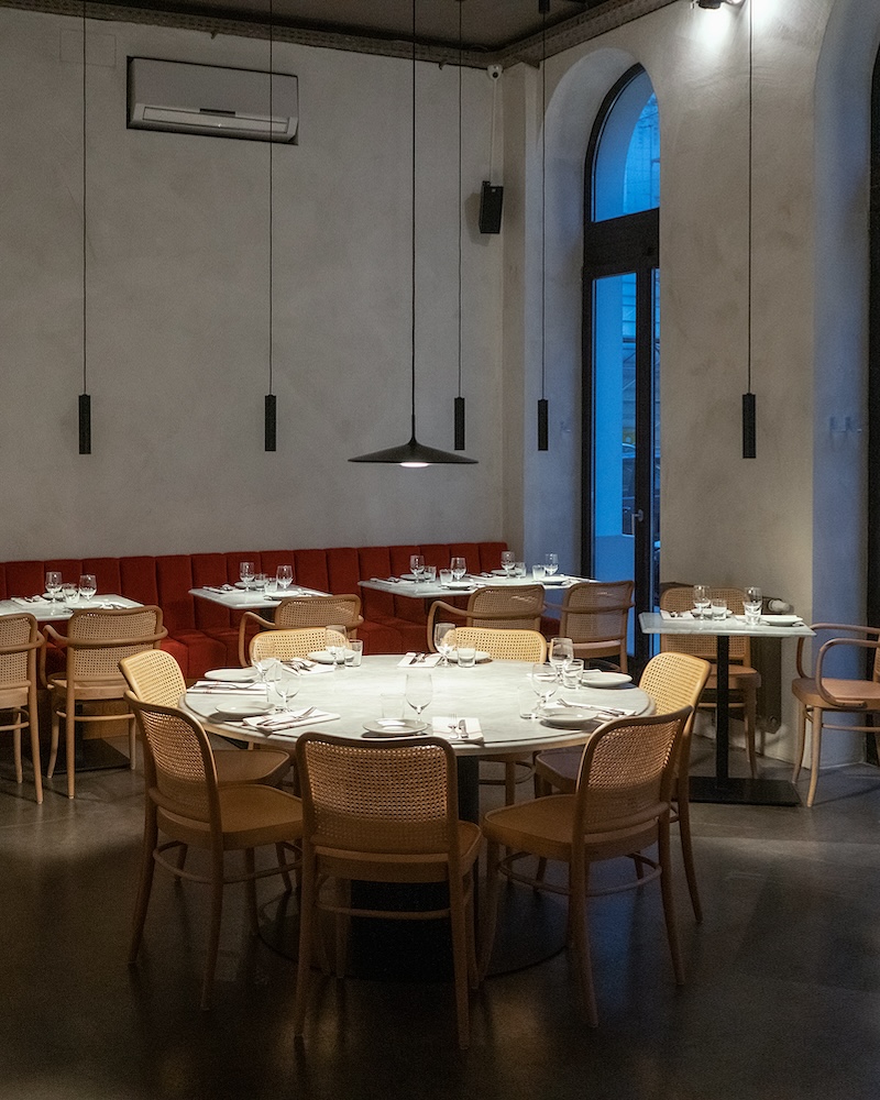 No complex cooking and no ceremonial service – the city center restaurant C.O.P. stands for instinctive, honest cuisine and a new form of dining experience. Lightness also characterizes the approach of interior designer Julian Epok and Christina Hrdlicka: The elegant Thonet model “580” sets modern accents here. But above all, the homogeneity of the implementation is impressive. All the marble elements such as the food bar, tables and service stations come from one and the same large block from a quarry near Vicenza.