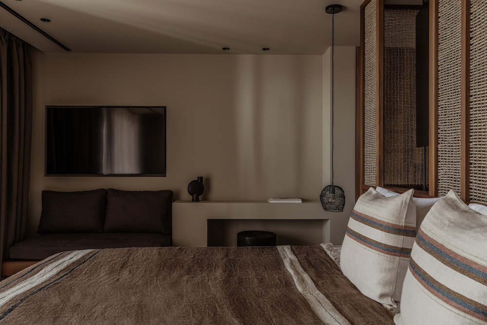The architecture of the hotel was inspired by the Kamares, traditional Greek houses found in island villages. Flowing transitions between lovely interior and exterior spaces are characteristic for the entire compound.