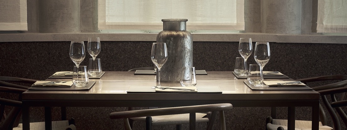 At Cenerè, the sensorial experience is as important as the culinary one. The entire interior pays tribute to the landscape around Mount Etna: wether it be the oak parquet, the dark leather sofas or the chairs, a composition of metal and stone.