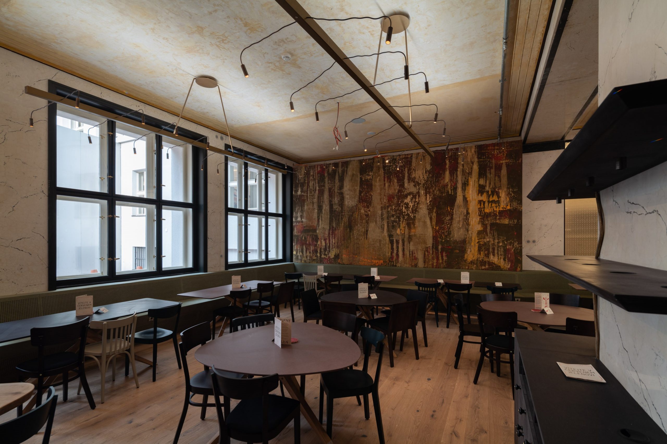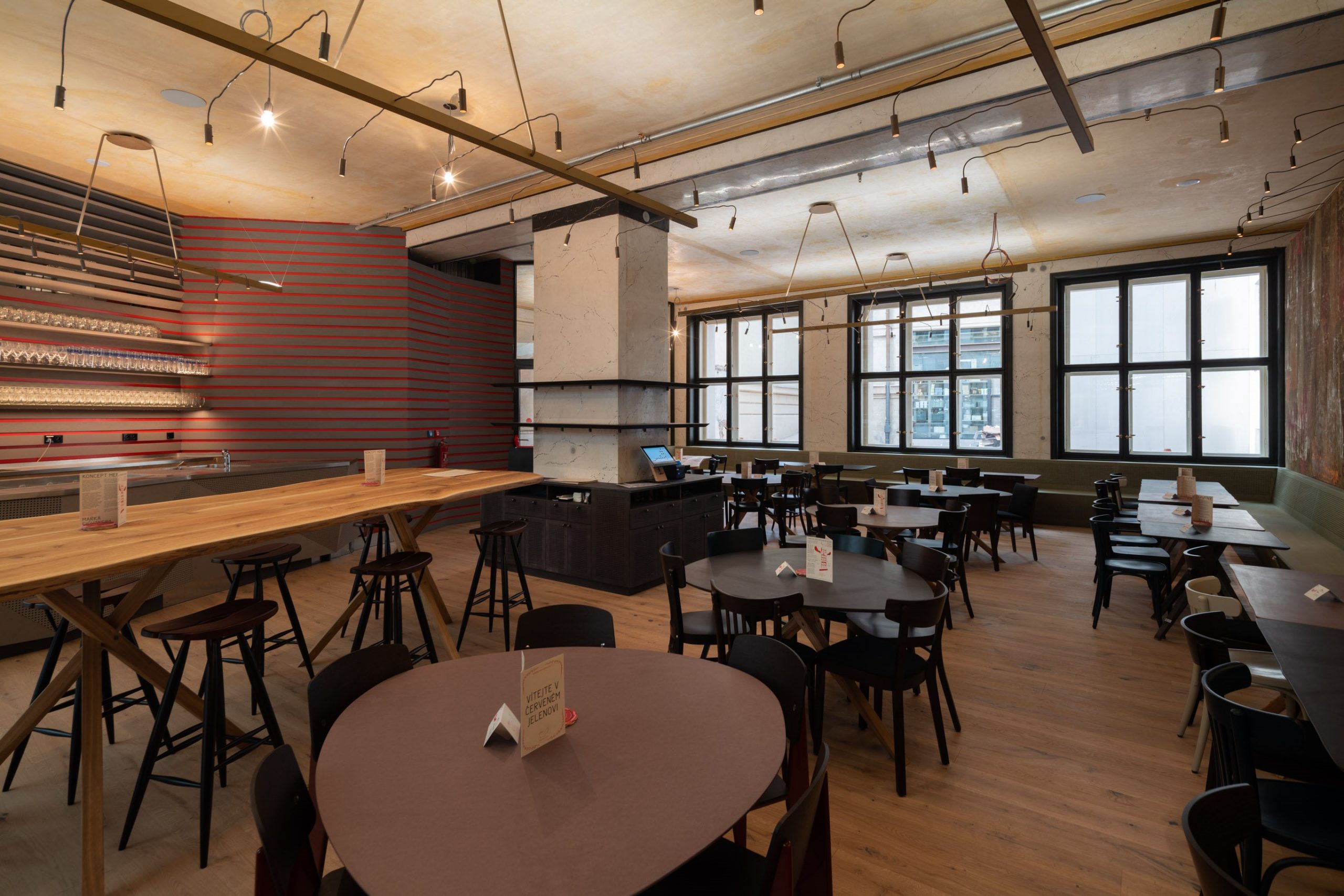 Červený Jelen is a bar located in the former bank building Piano Nobile, built in the 20s Josef Gočár on the grounds of the baroque Swéerts Sporckovsky palace.