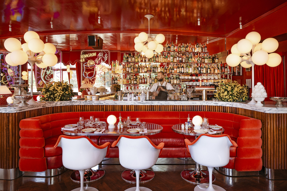 On plush red velvet at red tables, guests eat from floral-patterned china under the watchful eyes of porcelain predator cats. What is served is much more classic. In addition to a very good sourdough pizza, the menu includes Italian starters, pasta and various small dishes (e.g. arancini).