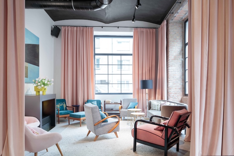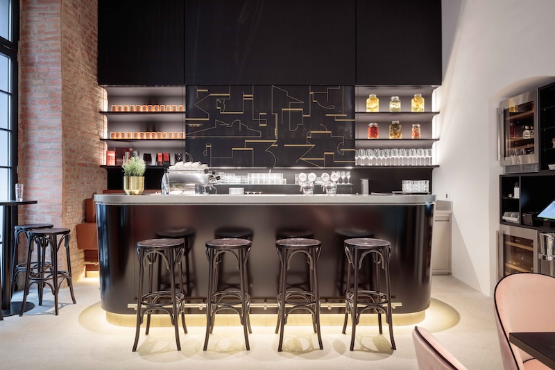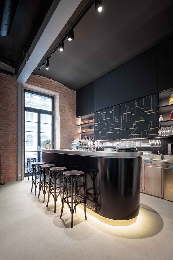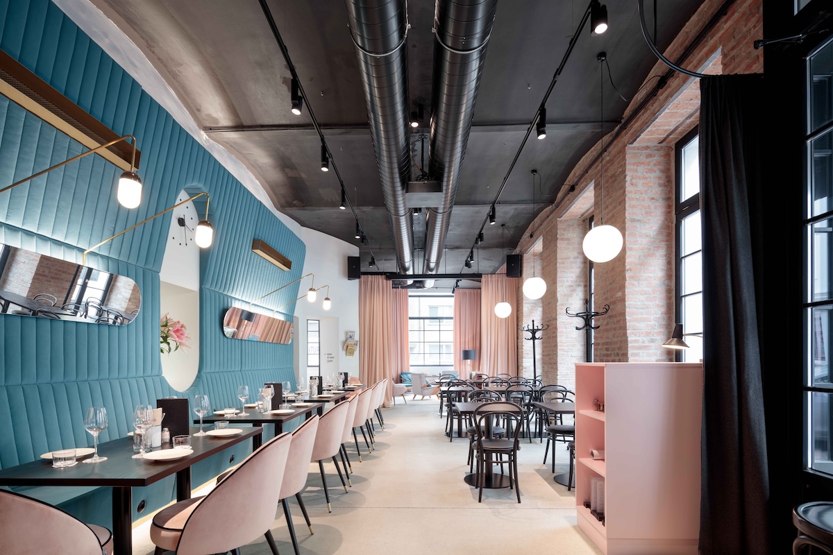 They preferred to combine contrasting elements. The roughness of concrete and brickwork meets fine lacquer and velvet, and the content ranges from a simple art café to a luxurious restaurant.
