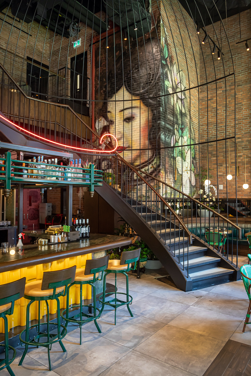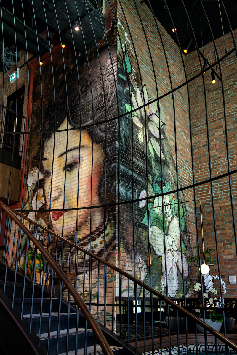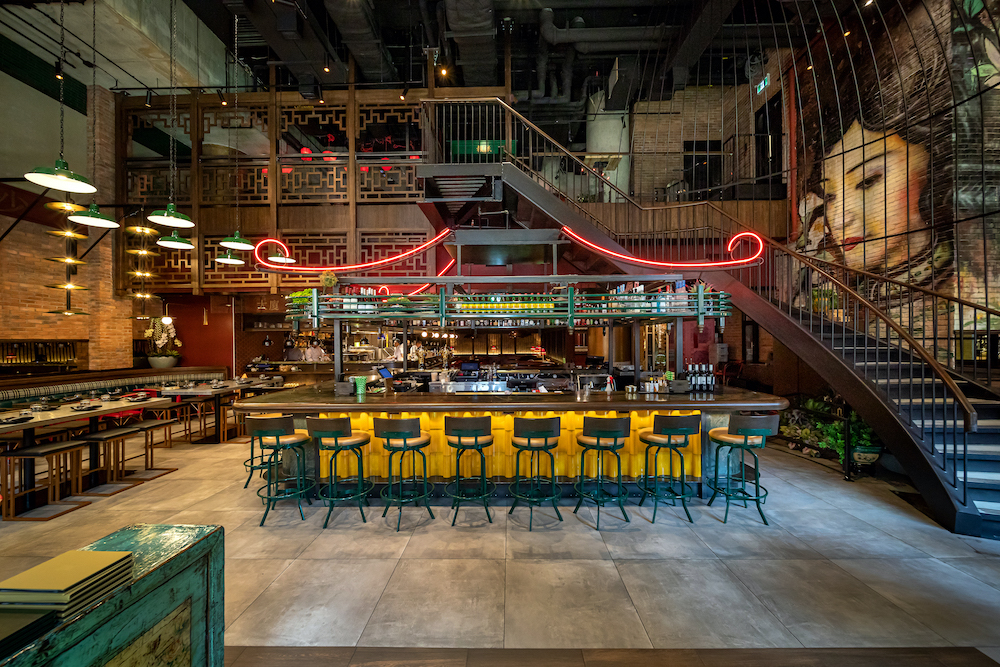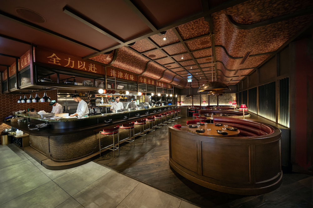 Totally different is the visual of a Geisha looking at guests from the wall or the neon tubes in the shape of traditional Asian roof silhouette. Overall, the entire room concept centers the art of the local chef as the Dasha features a completely open kitchen that serves as the stage for the perfectly orchestrated team.