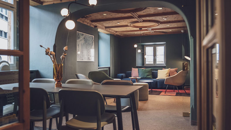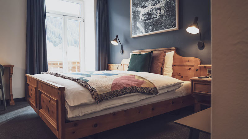 Swiss stone pine meets modern design – that sums up the concept of the Zurich agency Pfeffermint. It has turned the Davoserhof into a hip mountain retreat. The 21 rooms were furnished with stylish decorative elements and murals by young designers, and the lounge was transformed into a cozy salon. Pfeffermint also revamped the gastro concept. If you don’t want to go to bed yet after dinner in the fondue hotspot Piz Piz, with surreal cloudscapes on the walls and a very Instagram-worthy winter garden with a view of the Jakobshorn, you can get first-class drinks – and red light – at the Rotliechtli.
