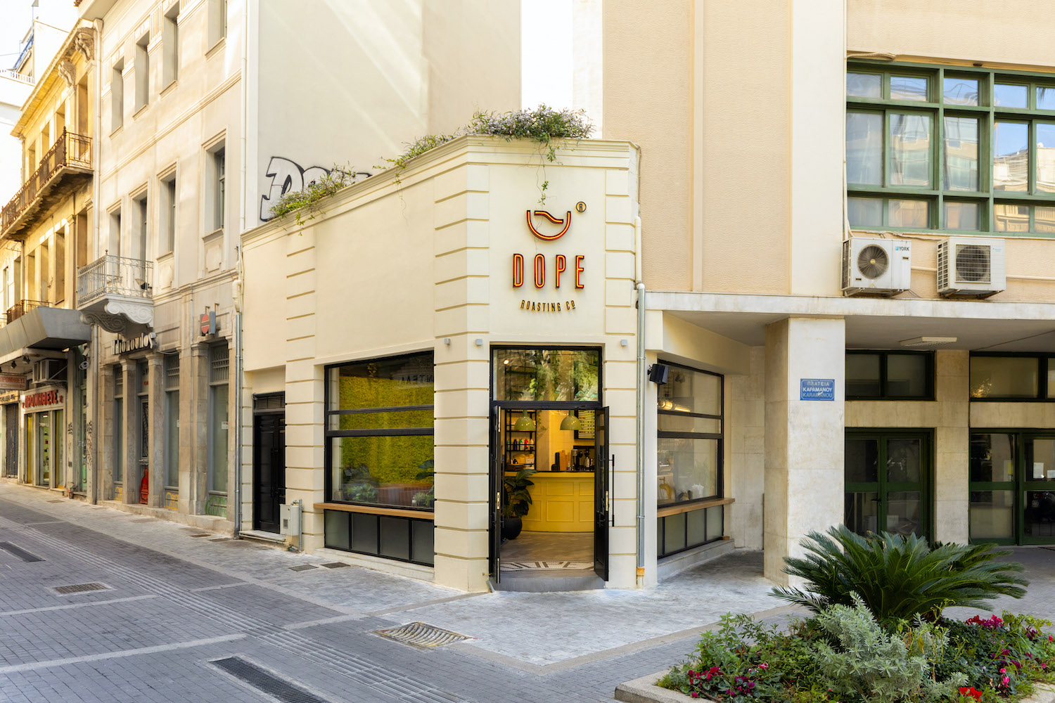 DOPE Roasting Co is an espresso bar with a coffee roaster and also features its own bakery. The challenge for the interior designers was to create a coherent appearance for the different functions such as the production and delivery of coffee, roasting the coffee to the bakery and guest room.