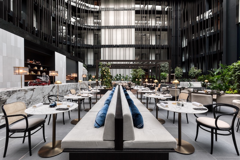 The heart of the hotel is the inner courtyard with the Pavilon Restaurant & Bar, where you can marvel at the green herb wall “The Mark”