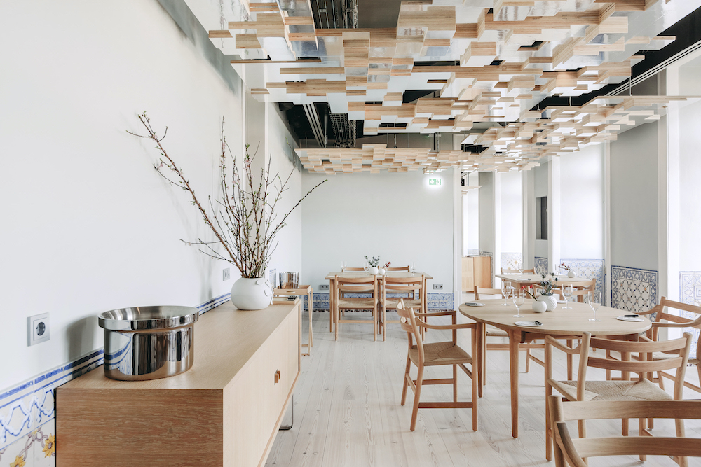 A former Bulthaup show room in the Chiado district that turned into a top-class restaurant? That is not a bad base for top chef Vincent Farges, who took over the lead of the kitchen here. Because the funktional Bulthaup pieces are still there and mark a third of the 240 square meter large area. It is the first area that guests discover as soon as they step into the restaurant. After having absorbed the industrious atmosphere regarding cooking, a small lounge and an aperitif area invite to relax. Both dining rooms wait afterwards with a lovely view of the city center. Subtle colors, delicate oak furniture, exquisite leather details, organic shapes and typical wall tiles assure a pleasant atmosphere.