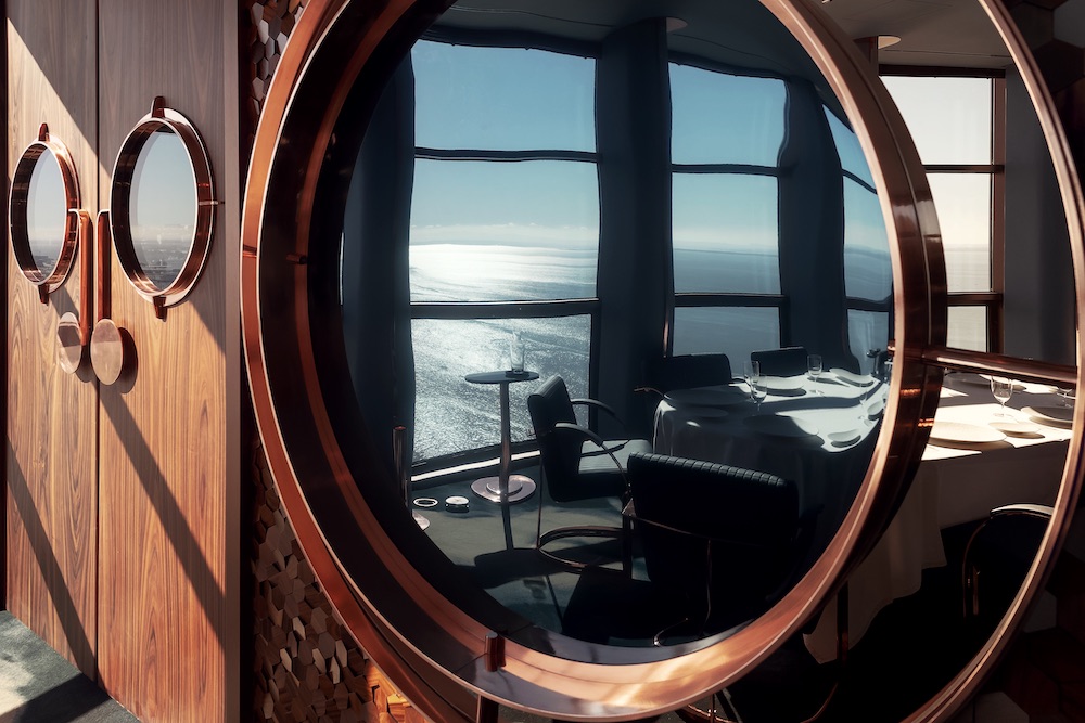 Fifty seconds. That is exactly how long the elevator takes to the highest floor of the Myriad Hotel in the famous Torre Vasco da Gama and defines the name of the exclusive restaurant for 35 guests. Exclusivity and uniqueness are also promised by the served culinary by star chef Martín Berasategui. The elegant color palette of the interior combines shimmering copper and smoky blue. Interior designer Nuno Rodrigues and his teams Metrobox and Stabörd prove a lot of attention for the smallest detail.
