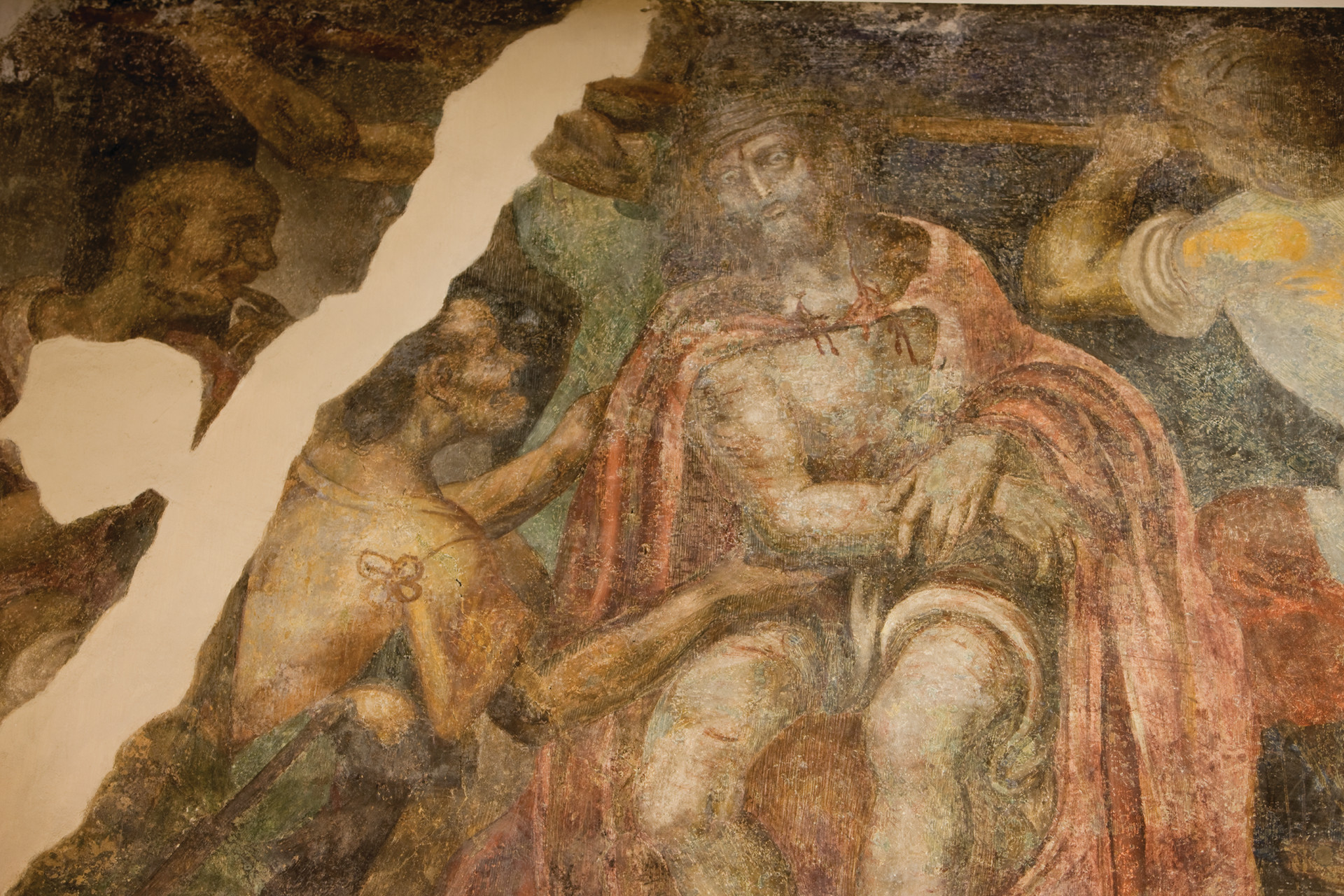 colors now play with the original frescoes and historical elements of the former monastery, while the walls have been decorated with bronze inserts and mirrors.