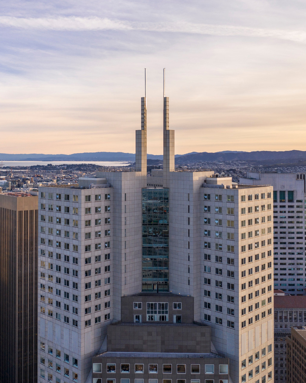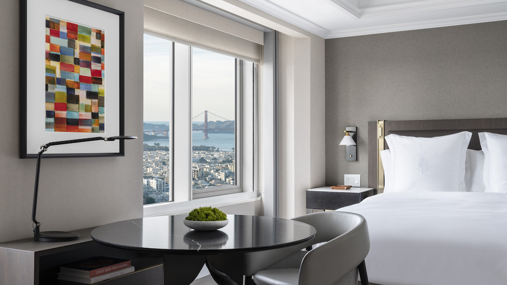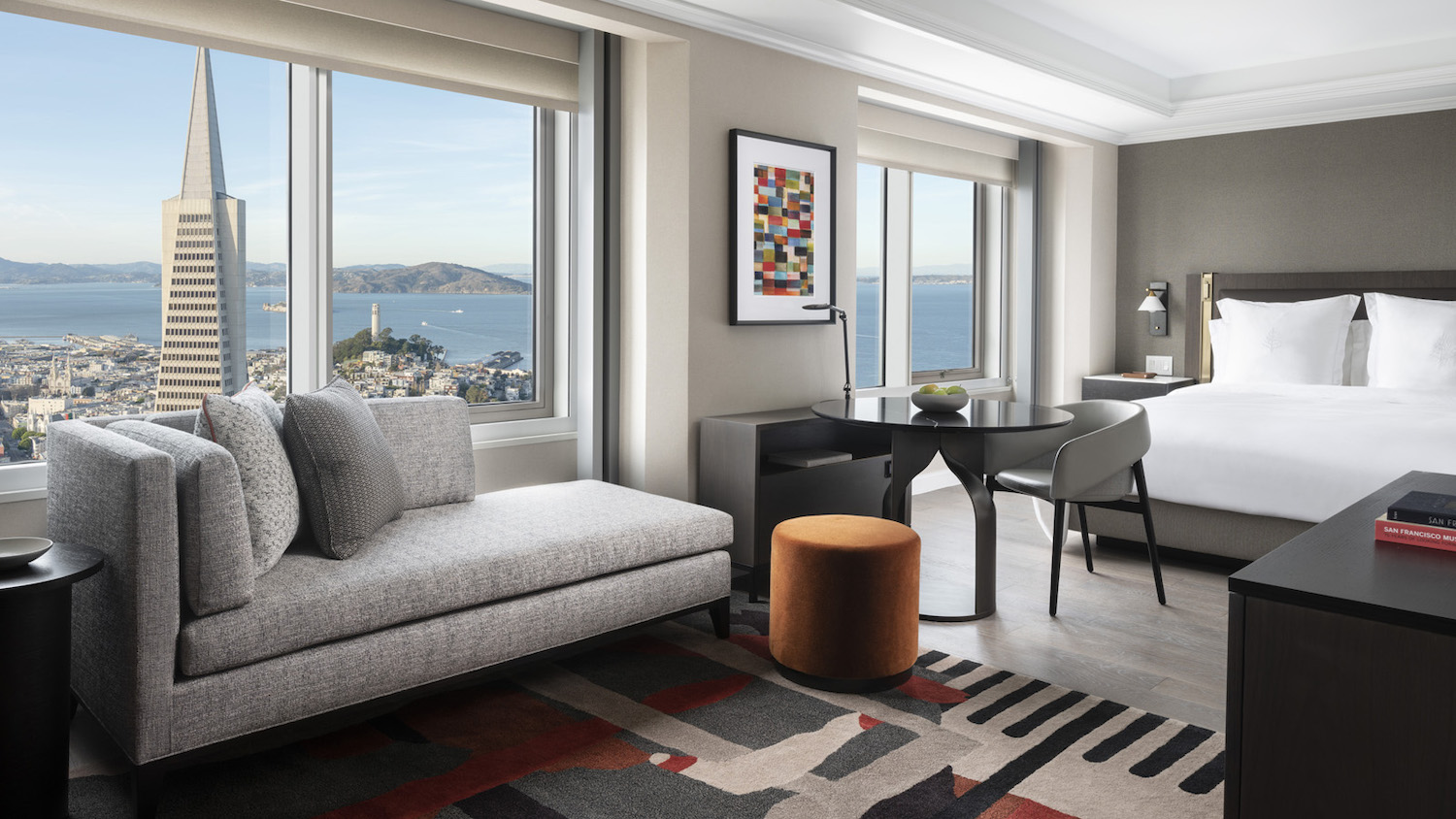 The hotel that opened in the fall of 2020 is not only located in San Francisco’s fifth highest building but also takes up the upper 11 floors. Guests can look forward a lovely panoramic view across the city: Starting with the Golden Gate Bridge, to the Transamerica Pyramid and Bay Bridge until the bay of San Francisco with the island of Alcatraz.