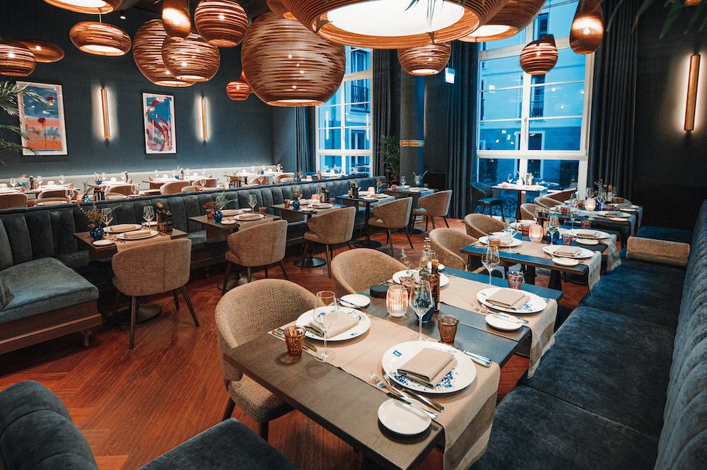 The fresh interpretation of the classic French style is especially striking, whereby the bistro manages a creative mix of old and new: exposed pipes run along the high ceilings and traditional bistro tables can be found next to contemporary wall coverings in a cool grey.