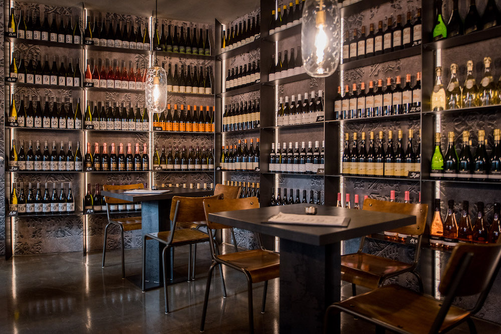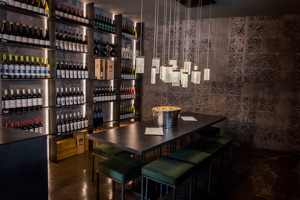 The large shelf on the walls of the bar is worth seeing: a custom made construction of oxidized steel that highlights the bottles thanks to a backlighting concept