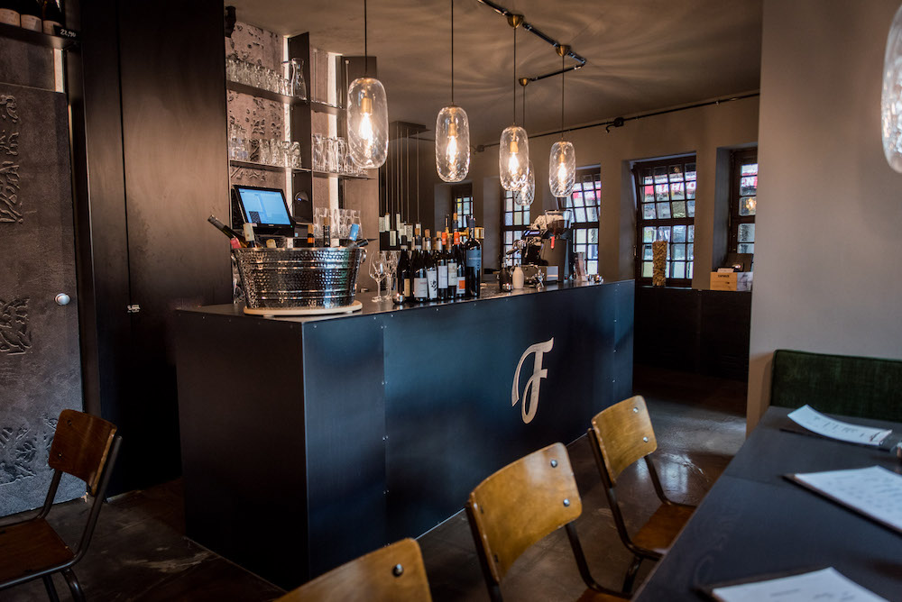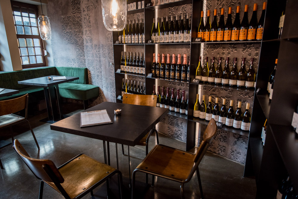 The aesthetic combination of present and past is part of the brand identity of the design duo Faltenbacher & Smola. For the Friedrich Weinbar in Düsseldorf’s historic center, they combine a vintage atmosphere of wine making with visual codes of a young urban audience.