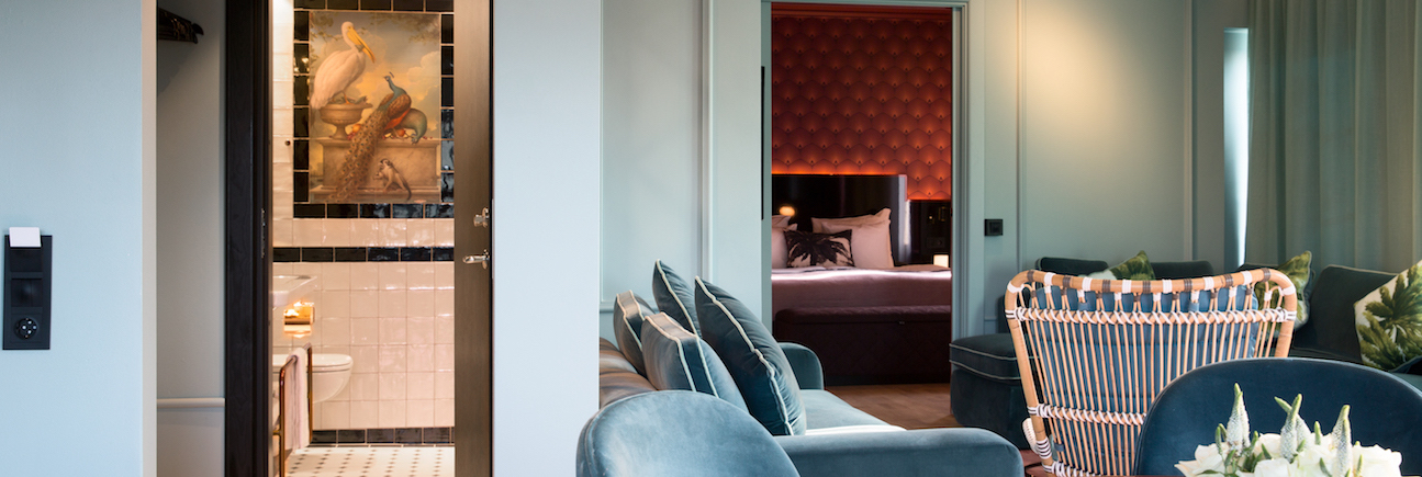 Every room exudes 20s style thanks to its marble counters, velvet sofas and custom-made wallpapers. Existing art-deco details such as floral patterns on the floors or vaulted stair cases were carefully restored and combined with current Scandinavian design.