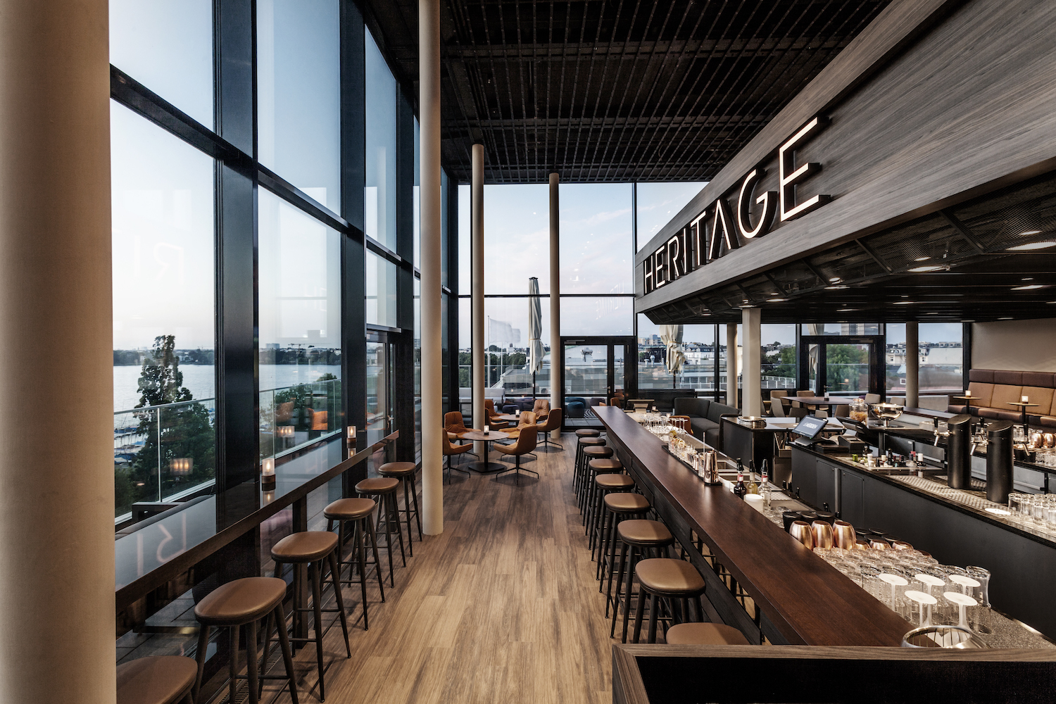 In Hamburg, rooftop bars are literally popping up like mushrooms. The Heritage Bar stands out from the masses with its location: As an icing of the Le Méridien Hotel it can be found high above the Außenalster, so that one can let the view sweep across the water while enjoying drinks and evening sun.