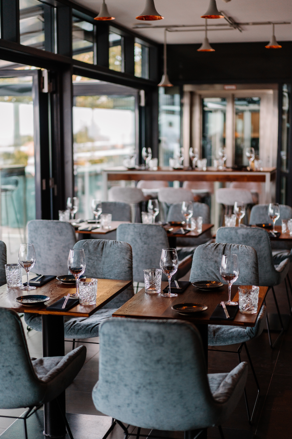 Optically, the Herr Hoshi is also a delight: Daniela Schmidt, the wife of owner Oliver Schmidt, has designed the interior with a lot of attention for detail. Further, there is a lot of craftsmanship included: The tables were made in their own carpentry run by Oliver Schmidt nearby. Stylishly combined with chairs by seating manufacturer Freifrau and completed by a mural by Hamburg’s street artist Bobbie Serrano, the restaurant radiates individuality and originality.