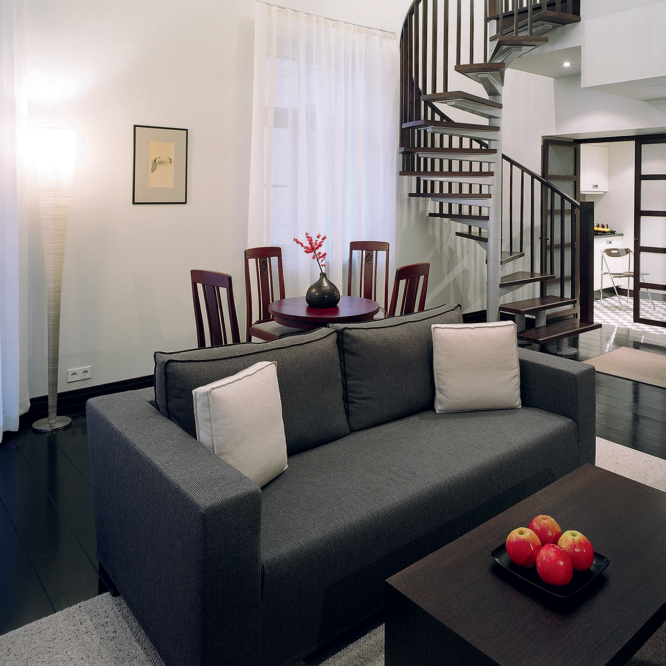 The demure interior of the Hotel Berg with its straightforward arrangements and subtle colors has been enhanced with original art of Latvian paintings and design objects. Natural materials such as leather furniture, wooden doors and handwoven linen build the down-to-earth touch. This is highlighted by unique accessories, African wood carvings and historic fireplaces. Overall, a visual work of art!