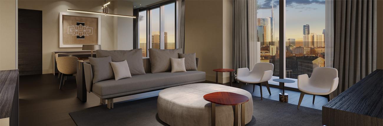 Furniture by Molteni&C, custom made by Molteni&C Contract Division, lamps by Flos, textiles by Rubelli, bath products Zucchetti.Kos
