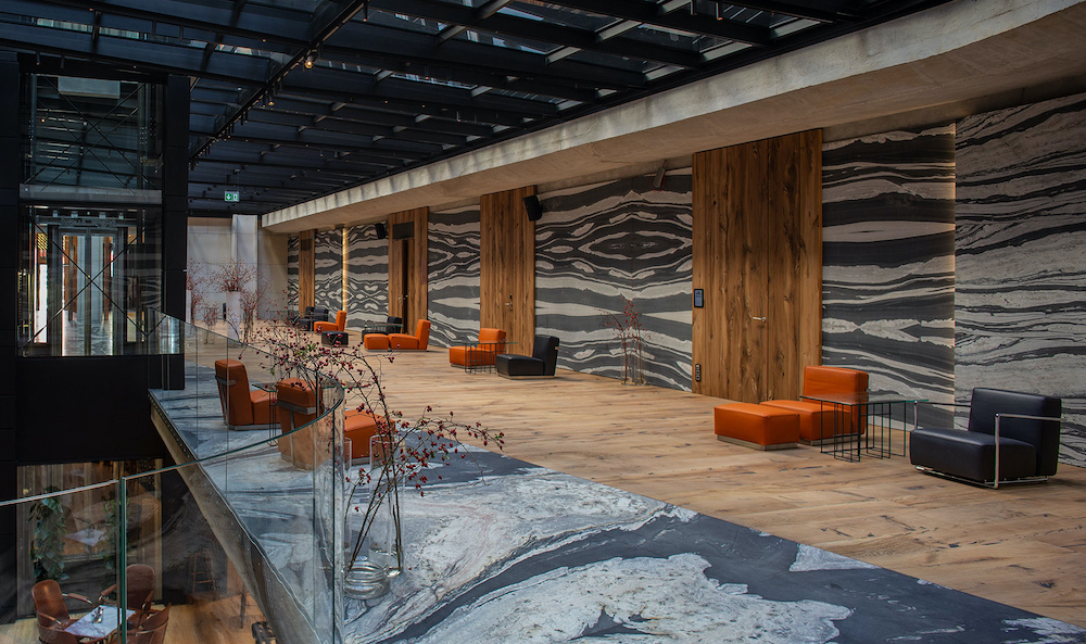 But the hotel will not only delight fans of architecture but also design lovers. A reason for that: selected furniture pieces by Italian manufacture Flexform. The characteristic subtle elegance of the pieces complete the interior and stands in perfect harmony with the dominant materials marble, steel, glass, copper and concrete.