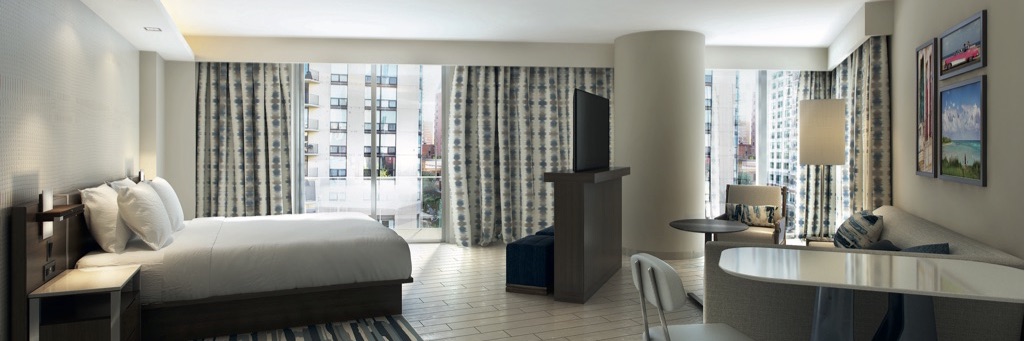 This can be seen from the rooms of the 83-floor high panoramic tower, Florida’s highest building. The 208 room hotel offers private balconies, partially with a view of the turquoise Biscayne Bay.