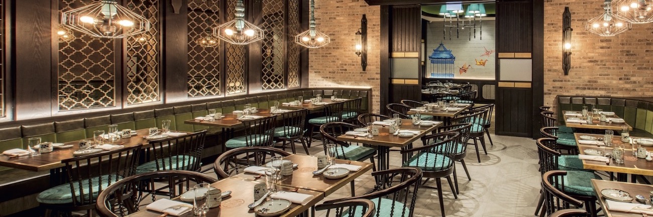 You will not find common stereotypes of Chinese restaurants such as red shades and dragons here. Instead, this restaurant uses unconventional colors and integrates Chinese elements. The result is a wonderful, casual room.