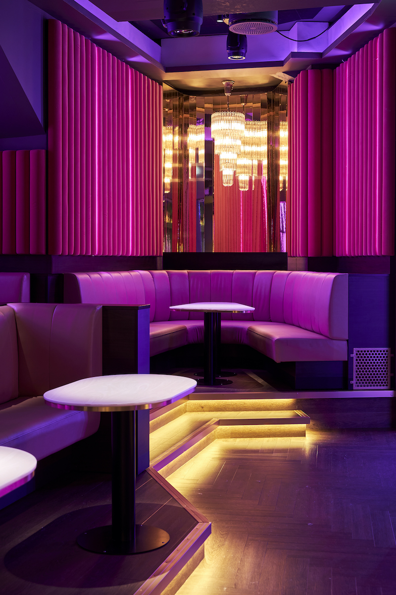 The themes botanics and femininity served as inspiration. Different rose shades as well as flowers and plants in all shapes prove this. All this is strengthened when light, sound and smoke effects play together and are heightened thanks to many mirrors and shiny surfaces.