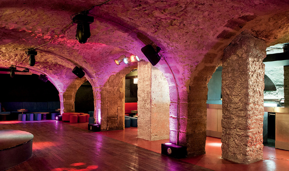 The former WAGG was the oldest club in Paris. Allegedly, Jim Morrison spent his last hours there. The club was renovated, its interior gently remodeled. The reflective metal surface of the bar fits the contemporary cuisine and contrasts the colorfully lit vaulted space. The large dance floors are wooden, the rest of the floors concrete.