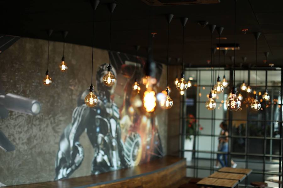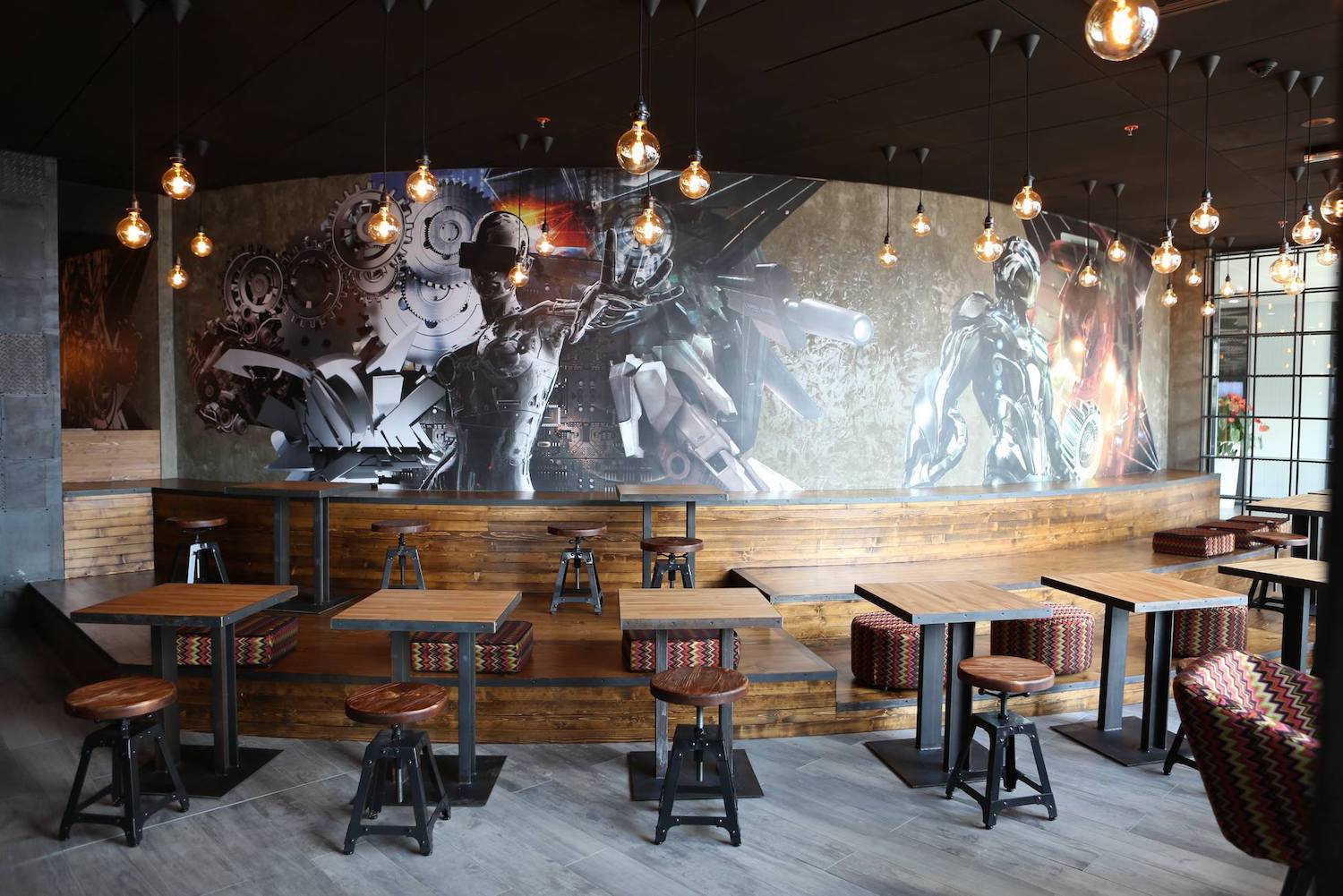 In the frame of their contract they chose a proven design concept that uses a playful approach to the industrial character of the interior. To add to that, dark, massive wood was used and gives the place a friendly atmosphere.