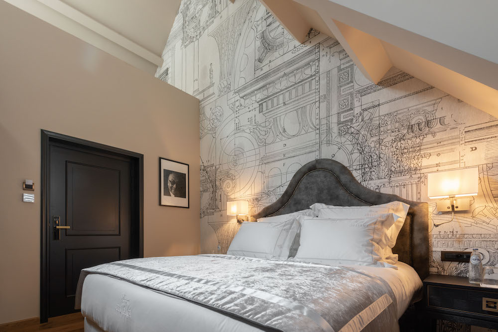 Beauty is at home here: frescoes inspired by Michelangelo drawings, neo-classical paintings and Medusa heads, the doormen wear hats designed especially for this house.