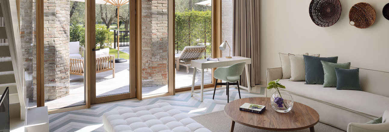 The adjacent brick gazebos were rebuilt according to the “box-in-the-box” principle. That means that the interiors were turned into maisonettes, offices, suites and a generous spa area that respect the landmark walls.The landscape of the lagoon dominates the entire project. Regional materials such as brick, tile, glass, mirror and Venetian textiles are used without nostalgic or historic touch.